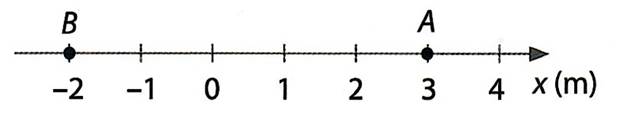 Keha asukoht on määratud koordinaattelje 0-punkti suhtes vastava x-koordinaadiga. Nii on punkti A korral x=3m, st punkt on 0-punktist 3m kaugusel. Punkt B aga x=-2m, mis tähendab, et see on 0-punktist 2m vasakul. Keha liikumisel tema asukoht x-teljel muutub, see aga tähendab, et liikumist kirjeldav x-koordinaat on ajast sõltuv suurus ja seda saab anda mingi ajast sõltuva funktsioonina