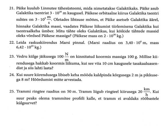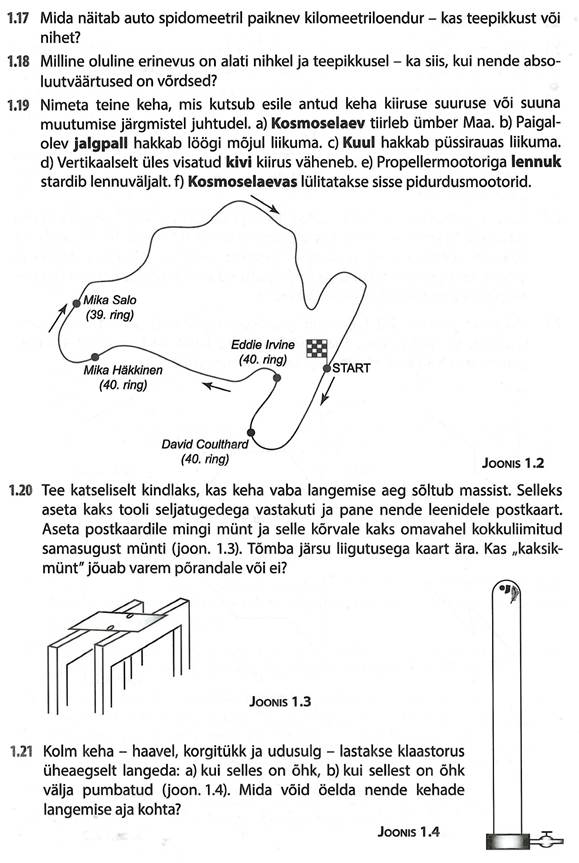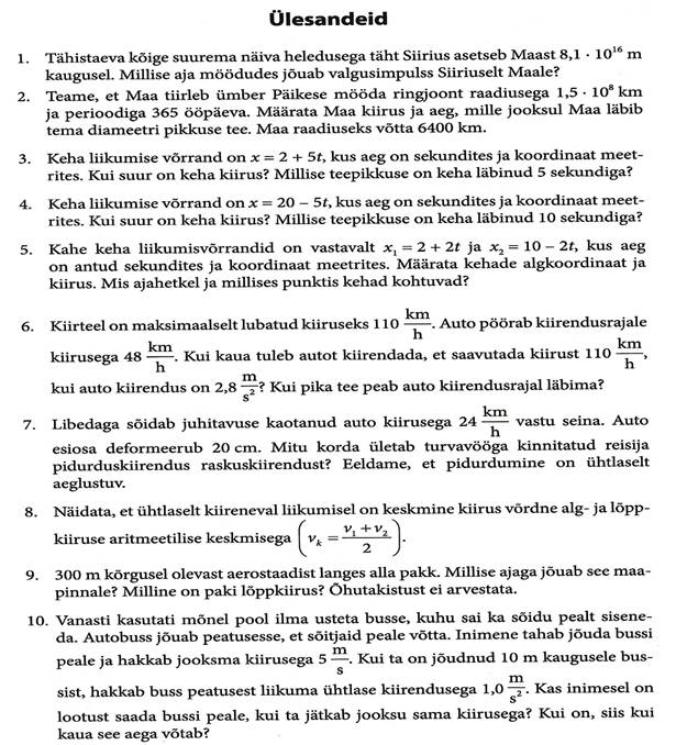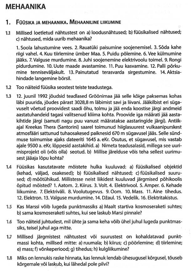 Järgnevalt vaatleme füüsika ülesandeid mehaanikas, konkreetselt käsitleme mõisteid. Palun vastata koduse ülesandena enda konspekti osa 1.1, 1.4, 1.8, 1.13, 1.19, 1.21.