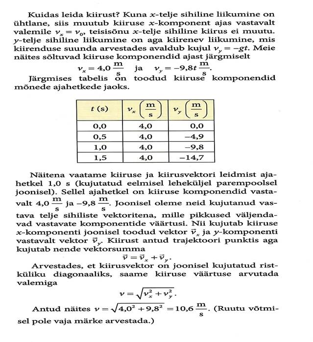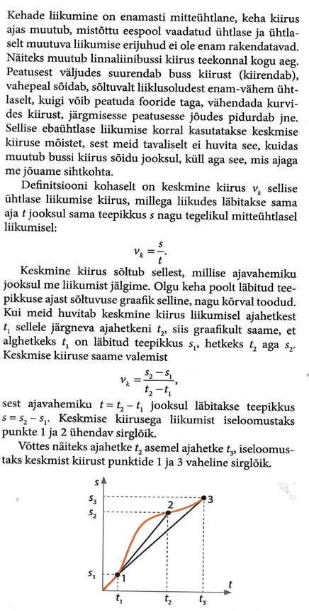 Põhimõisted: kulgliikumine, punktmass, taustsüsteem, kinemaatika, skalaarne ja vektoriaalne suurus, teepikkus, nihe, kiirus, hetkkiirus, kiirendus, vaba langemine, heitkeha.