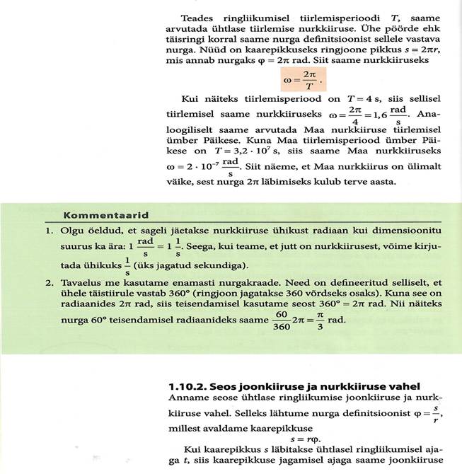 läbitakse võrdsed teepikkused ehk võrdsed kaarepikkused. Kiiruse same jagades aja t jooksul läbitud teepikkuse s ajaga: