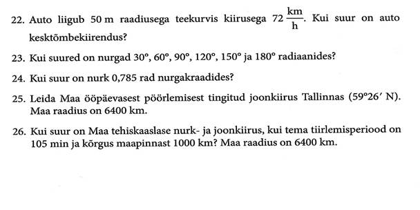 Põhimõisted: pöördenurk, nurkkiirus, joonkiirus, kesktõmbekiirendus