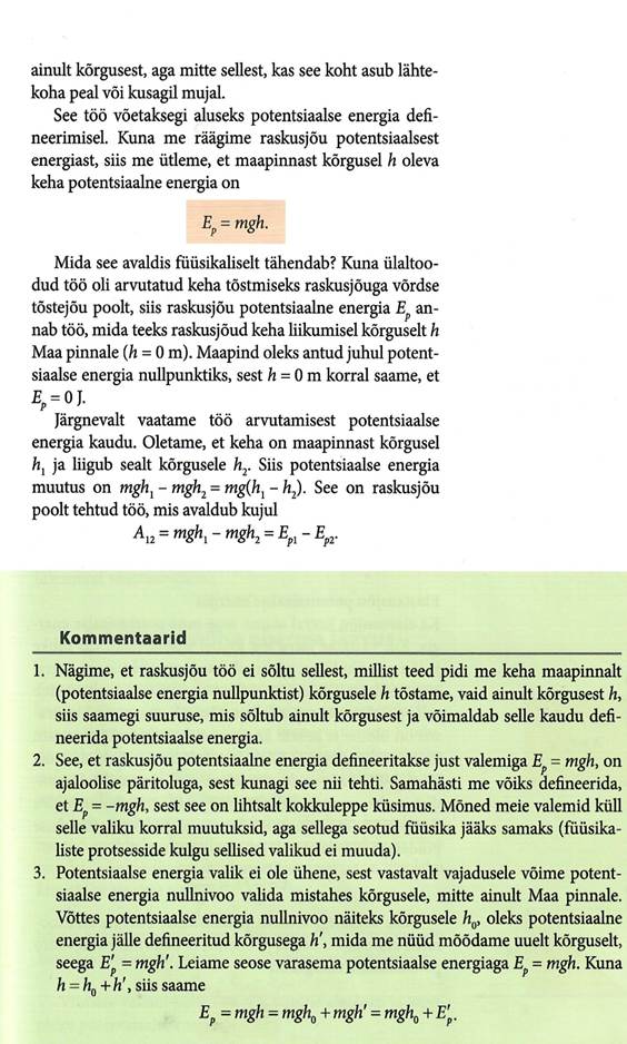 Keha energia (energia mõiste süvendatult – kursusel nr. 3. „Staatika elemendid. Jäävusseadused“).