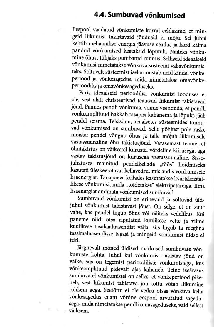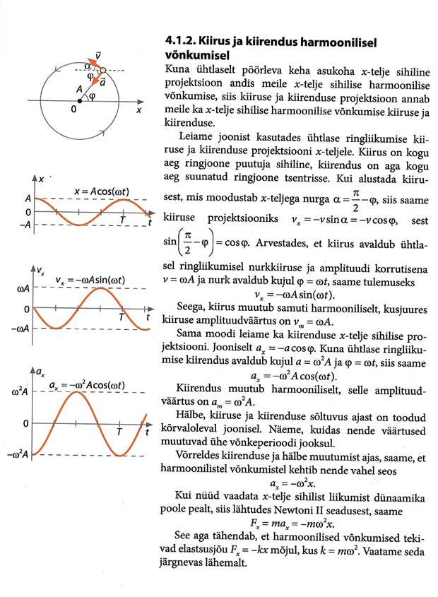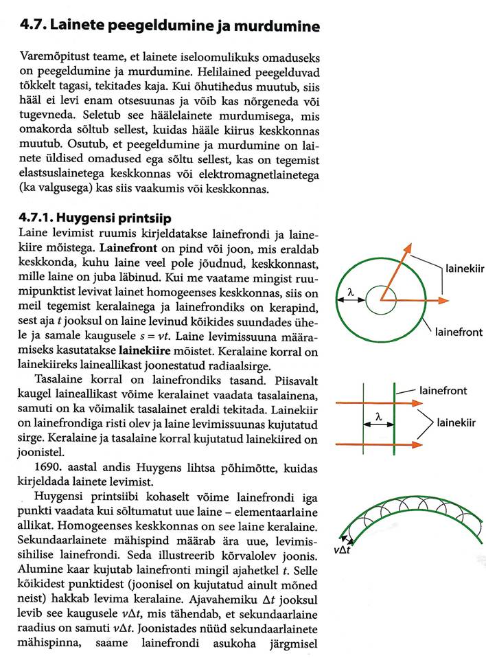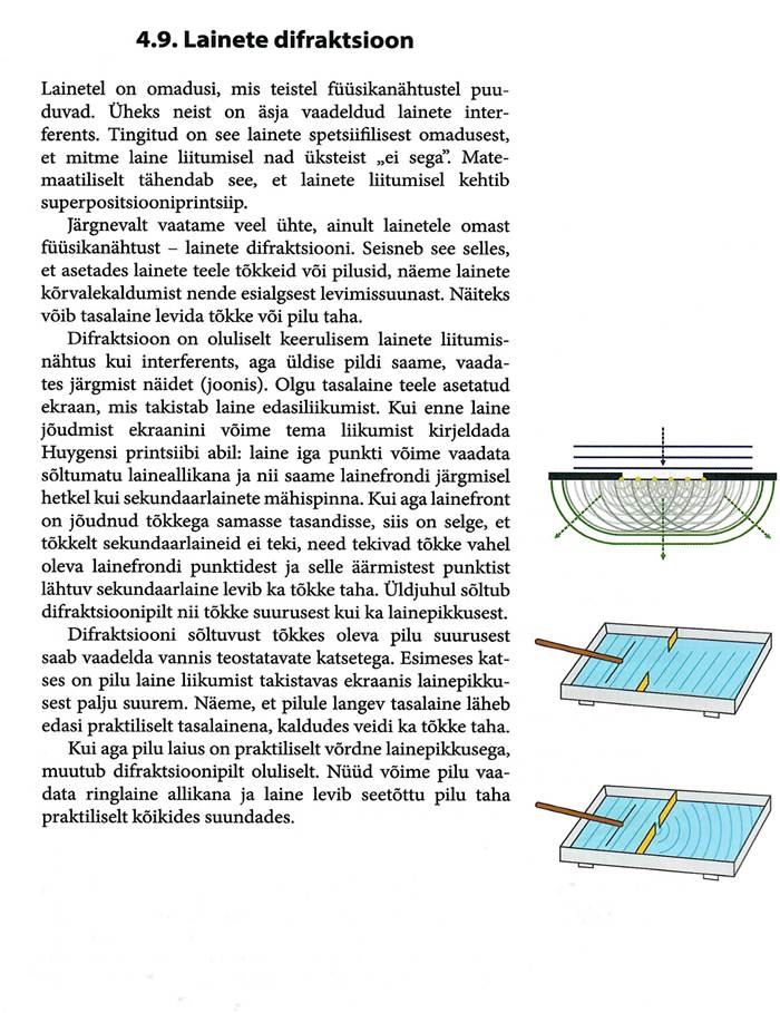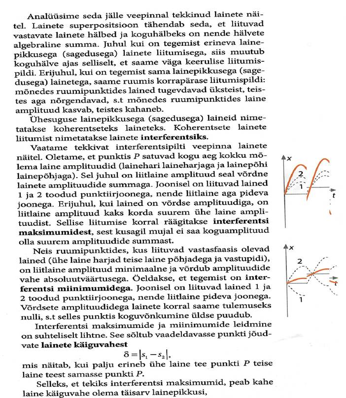 Võnkumisega seotud põhimõisted, matemaatiline pendel ja vedrupendel. Matemaatiline pendel, energia muutumine võnkumisel. Võnkumise levimine elastses keskkonnas. Laine levimise kiiruse seos lainepikkuse ja sagedusega. Lainete interferents, Hygensi printsiip, lainete peegeldumine ja lainete difraktsioon.